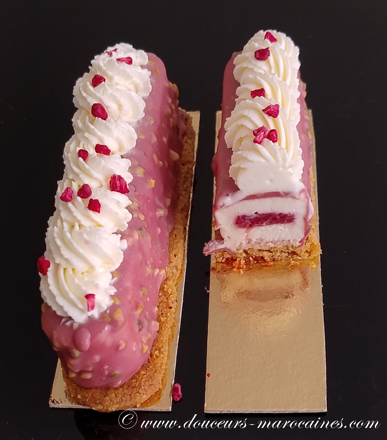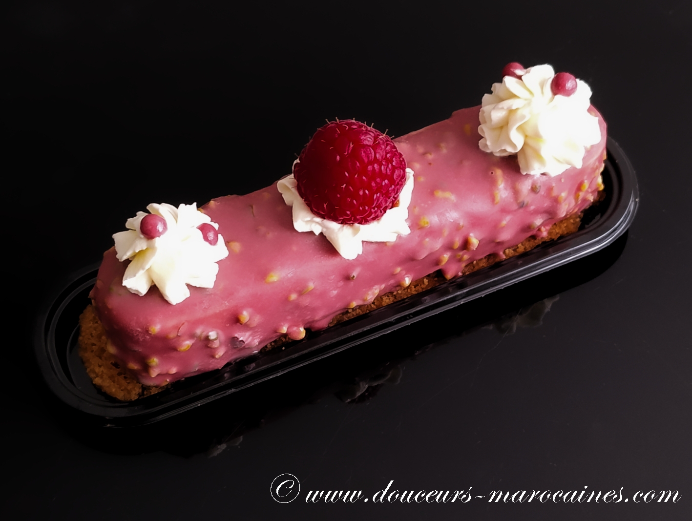 Succombez à l’élégance de ce finger glacé à la framboise. Sous un enrobage croquant parsemé d’éclats de pistaches, découvrez une mousse aérienne cachant un insert fruité intense. Un équilibre parfait entre douceur acidulée et croquant irrésistible.