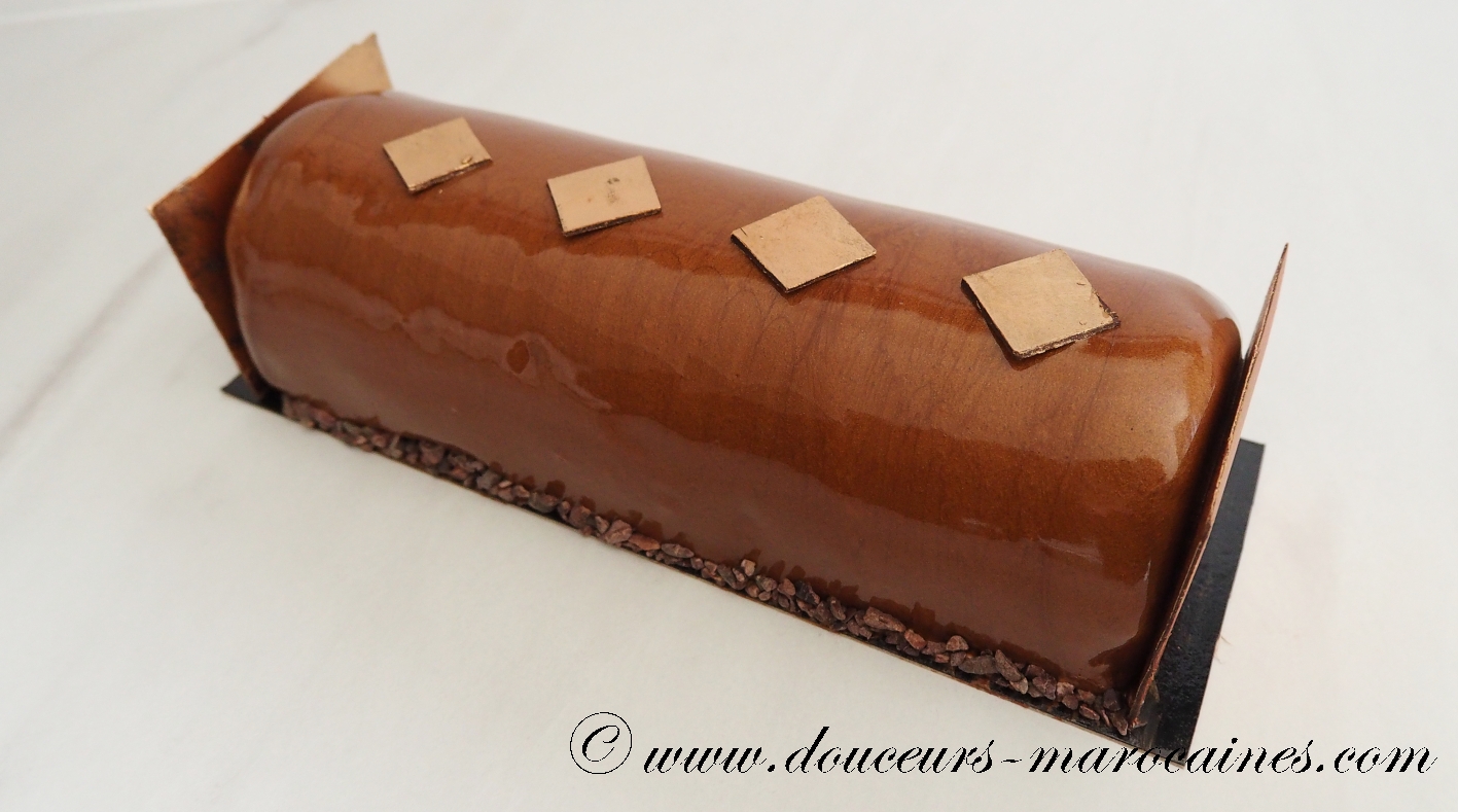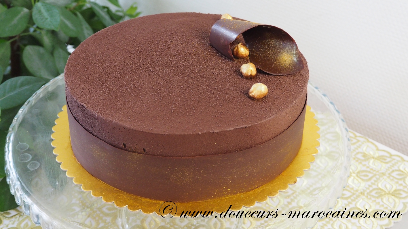 Découvrez l’alliance parfaite entre la force du chocolat noir et la douceur de la noisette. Cet entremet raffiné, ceinturé de chocolat craquant, offre un jeu de textures entre onctuosité et croquant. Une pièce maîtresse élégante, sublimée par une touche d’or pour vos moments de fête.